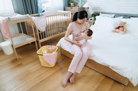 - Nghỉ ngơi sau sinh: Ngủ đủ giấc cho bà mẹ là điều hết sức quan trọng. Những người thân trong gia đình cần hỗ trợ chăm sóc bé để cho mẹ ngủ. Trung bình mỗi ngày, mẹ ngủ khoảng 8- 10 tiếng. Lúc ngủ, cơ thể người phụ nữ sẽ lấy lại sức khỏe, năng lượng và giúp sự tiết sữa tốt. Đồng thời giúp mẹ bỉm tránh được căng thẳng, trầm cảm sau sinh.