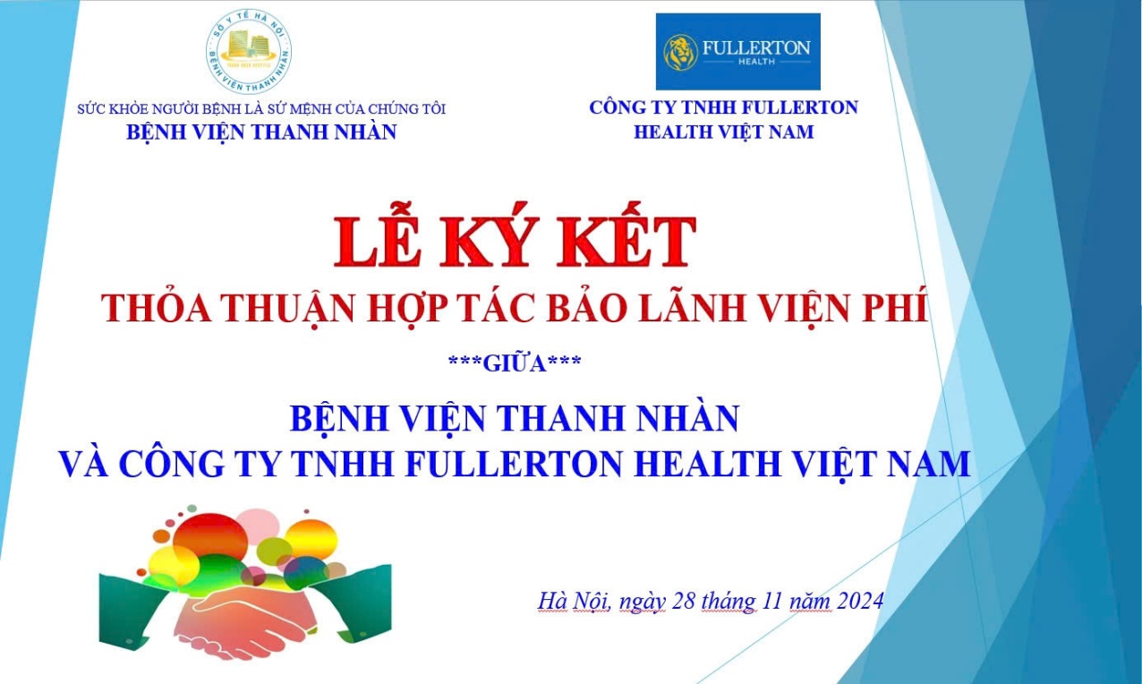 Sự hợp tác giữa Bệnh viện Thanh Nhàn và Công ty TNHH Fullerton Health Việt Nam không chỉ khẳng định tinh thần đồng hành vì sức khỏe cộng đồng mà còn là minh chứng rõ nét cho nỗ lực mang đến những giải pháp y tế tiên tiến và hỗ trợ tài chính hiệu quả nhất, giúp người dân an tâm hơn trong hành trình chăm sóc sức khỏe.