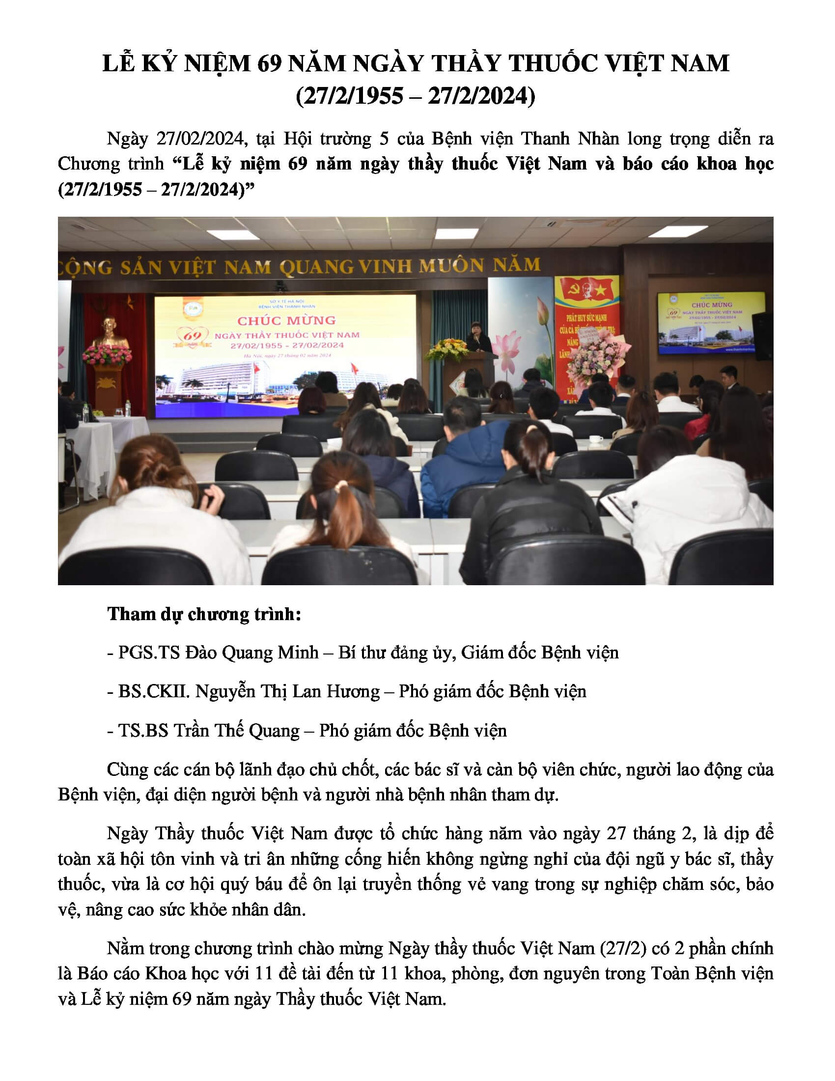 BỆNH VIỆN THANH NHÀN LONG TRỌNG TỔ CHỨC HỘI NGHỊ CÔNG BỐ QUYẾT ĐỊNH BỔ NHIỆM GIÁM ĐỐC