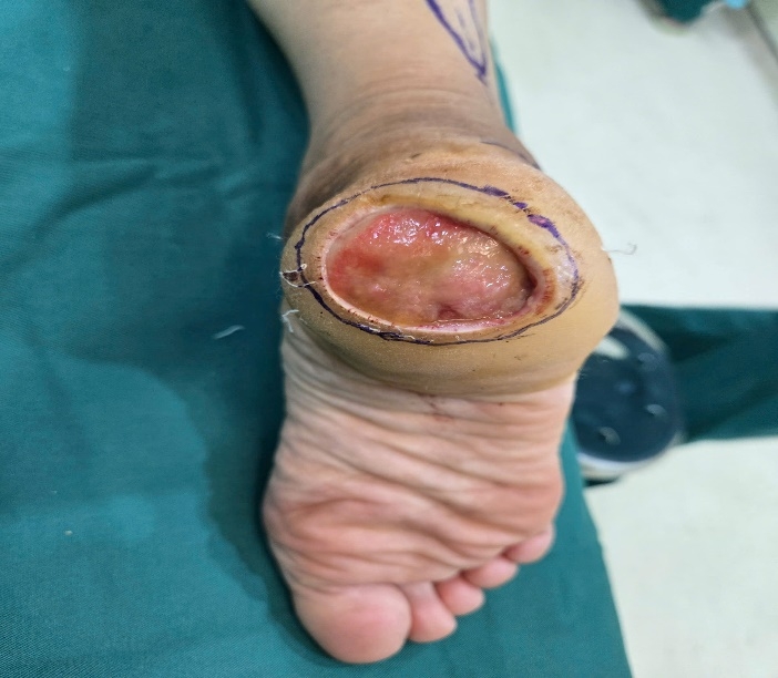 💡 Sau hội chẩn, BS Phan Minh Trung – Trưởng Khoa Chấn Thương Chỉnh Hình - Bệnh viện Thanh Nhàn cùng ê-kíp đã chỉ định phẫu thuật chuyển vạt Sural che phủ khuyết hổng gót chân.