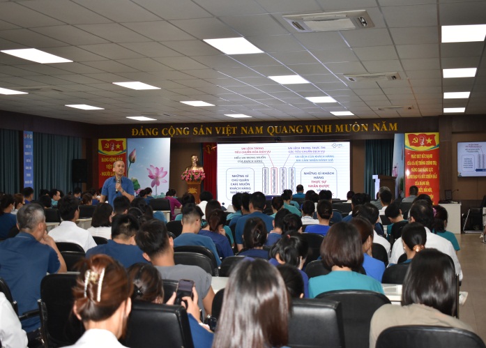 Giảng viên là BS Nguyễn Anh Hiệp – Giám đốc công ty phát triển dịch vụ khách hàng y tế đã chia sẻ về giao tiếp với người bệnh với từng vị trí của nhân viên y tế trong Bệnh viện.
